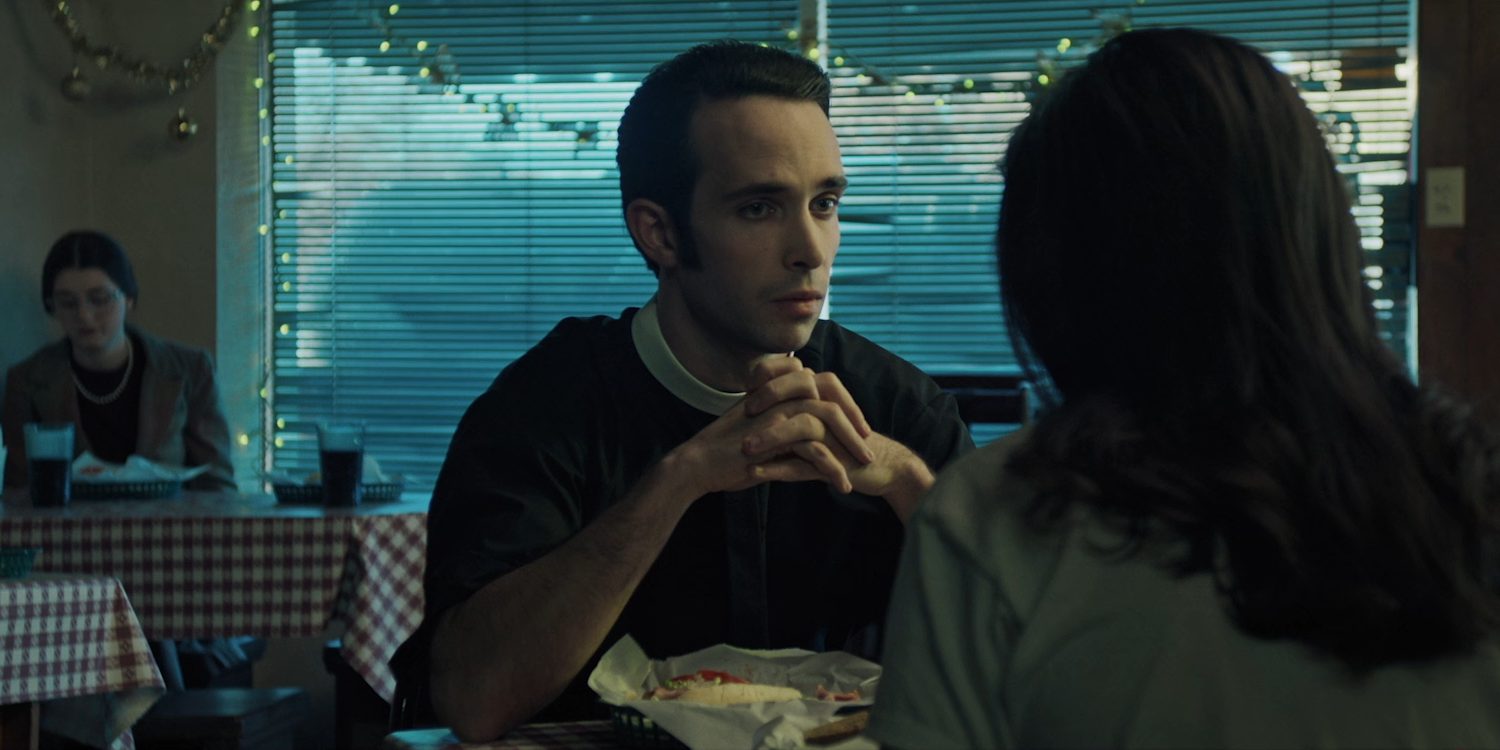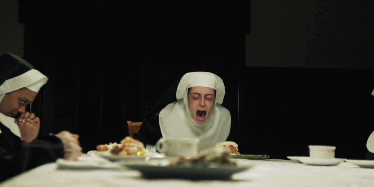 Henry lives a life of luxury and is not a serious priest, but somehow understands how exorcism works. The Mother Superior is displeased with the presence of Henry. However, Donaghue escorts Henry to Agnes’s room against the Mother Superior’s wishes. Henry tries to perform an exorcism on Agnes, but it goes horribly wrong, and Agnes bites his neck, leaving him bleeding profusely. Donaghue sees Mary in civilian clothes, carrying a bag, seemingly preparing to leave the convent. A few weeks later, Mary is no longer a nun and works at a convenience store, where the manager, Curly, takes an interest in her.