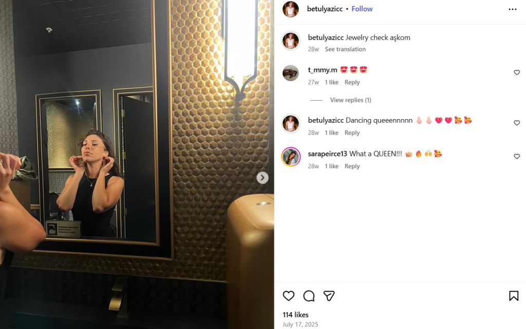 In July 2023, Betul basked in the sunshine and crystal-clear waters of Palma de Mallorca, Spain. It was then followed by her next trip to Italy in November 2024. In that very same month, Betul spent a memorable time enjoying the beauty of Nice, France, and the warm weather of Florida. By January 2025, she spent a marvellous day out in Florida’s Universal Studios. Eight months later, Betul found herself surrounded by the serene beauty of Canouan Island in the Caribbean, before returning to her homeland in Istanbul, Turkey. Most recently, the reality star took time to admire the striking landscapes of Gibraltar.