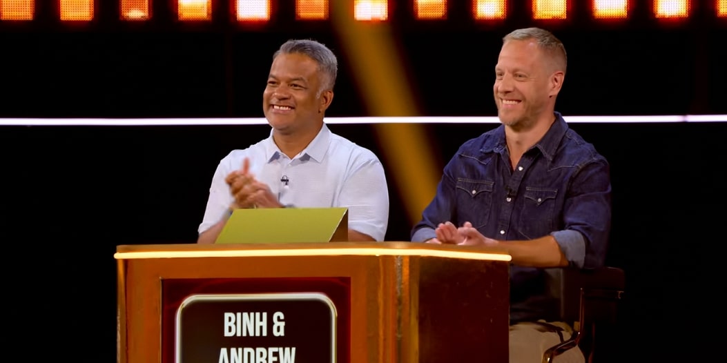 Sitting out allowed them to observe other teams, gather information, and use the situation to build alliances and it gave them leverage in later stages of the game. As the rounds progressed, they narrowly missed winning a box on multiple occasions. When presented with a card that allowed them to steal a prize from another team, they chose to act. Andrew explained that his wife would be disappointed if he passed up the Paris fashion experience, leading them to take the reward from fellow contestants Joey and Scott. Their journey ended during a Prize Fight against Kiera and Cardell for an exclusive watch collection. After losing that round, Binh and Andrew were eliminated in the final episode before the finale.