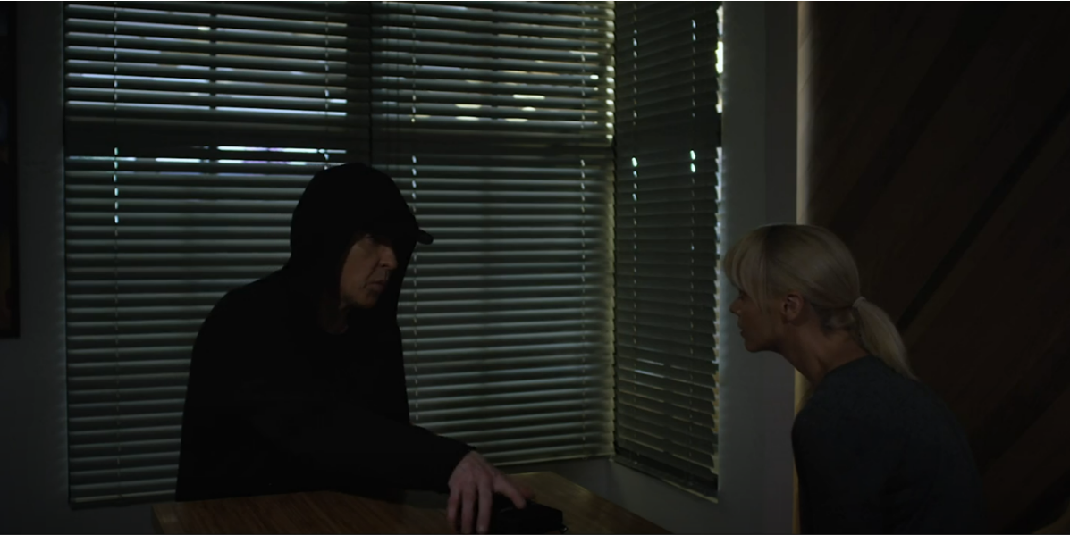 While Lauren naturally manages to surpass Starks’ psychological programming, many of her near and dear ones at The Pinnacle are not as lucky. Most notably, Russell himself almost becomes a target of the mass brainwashing, and only realizes the truth when he sees what happened to Lauren with his own eyes. This marks an important thematic distinction, as Starks’ entire operation is contingent on subliminal messaging that cannot be readily perceived and actively understood. His efforts to subdue Lauren lead him to forcefully make her watch nothing but images of cruelty and manipulation, which takes subliminality out of the equation. It is this critical error on Starks’ part that leads Russell directly to the truth and Lauren.