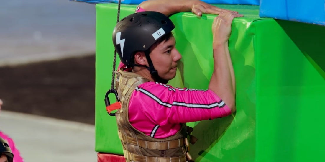 Johnny and his teammate worked methodically, stacking the blocks piece by piece and eventually reaching the height needed to attempt the flag. As time ran down, Johnny noticed that Mitch’s structure on the opposite side was slightly taller, giving the rival team a clear advantage in reaching the flag. With only seconds remaining and elimination imminent, Johnny made a snap decision. He leapt in an attempt to grab the flag and close the gap, taking a calculated risk under pressure. Unfortunately, the move fell short, and Johnny and his teammate were eliminated from the challenge.