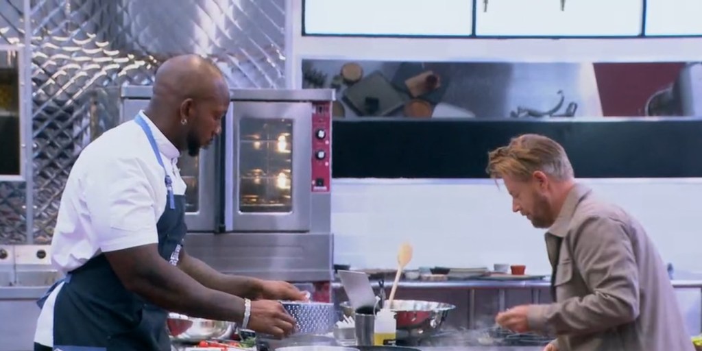 The episode kicks off with the arrival of the competitors, and Gordon wastes no time in announcing that moving forward, the team game will come to an end. Today’s challenge is the chefs’ last cook-off as a team, and they must elevate rustic ranch-style dishes within 30 minutes to stay in the competition. From the next challenge onwards, each chef has to fight for themselves. With two back-to-back wins, Nyesha’s team is set to cook in the Top Kitchen. While Richard’s team is in the Middle Kitchen, Gordon’s team is in the Basement Kitchen. As soon as the chefs and their mentors/judges arrive in their kitchen, each contestant gets ready for the ingredient grab. After the platform moves from the Top Kitchen to the Middle Kitchen, Darian realizes that he hasn’t grabbed any starch.