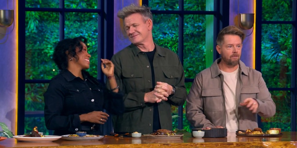 The tasting of the dishes for the day’s challenge finally commences with Cole’s fried catfish, which impresses both Richard and Nyesha. While Richard mentions that he would have liked the cabbage as coleslaw, the remark quickly earns him skepticism from Gordon and Nyesha. Next up is Andy’s wild turkey dish, and upon tasting it, Nyesha points out that the bottom of the dish is quite rich for such a light protein. Similarly, Richard also notes that the dish is quite overpowering with the cream sauce and slightly overcooked turkey. When the judges taste Gabrielle’s pan-seared rainbow trout, the chef earns immense praise from all the mentors for the dish’s presentation and flavor. Moving on, the judges first taste Jared’s pan-seared buffalo steak from the Middle Kitchen.