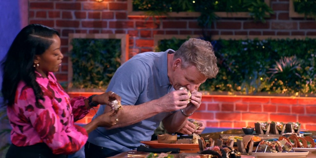The tasting of the Top Kitchen dishes begins with Elise’s flank steak taco, but unfortunately, Gordon finds the protein doesn’t have proper sear and seasoning. He also adds that the tortillas are thick and that he had to cradle his to keep them from falling apart. Although Tim’s tri-tip tacos and Darian’s lobster taco receive immense praise from the mentors, Gordon points out that Darian’s dish is quite spicy. Next up is Christian’s gochujang pork taco, and all three of the judges agree that, despite being spicy, it is pretty delicious. Lastly, it’s the turn for the brisket taco prepared by Jared, which also receives a compliment from Richard. As the mentors excuse themselves to discuss the dishes, they all admit that Emerson’s mishap is an unfortunate circumstance.