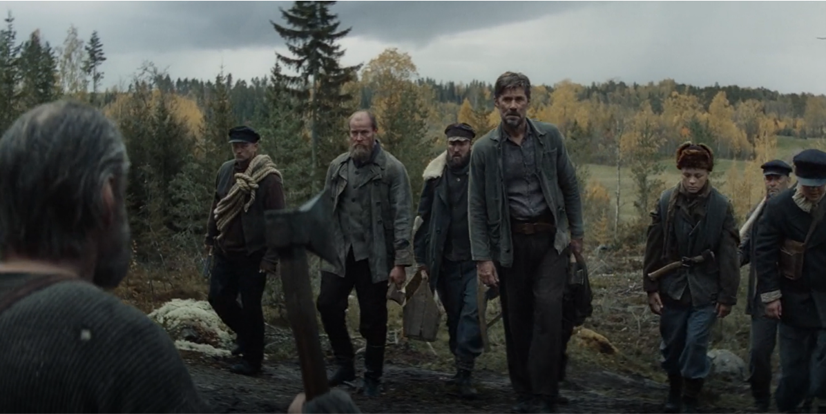 Although the movie ends with Aatami’s triumph over the Soviets, the final scene still brings its fair share of surprises. Particularly, it features a group of men wielding axes, hammers, and maces, all trudging their way to Aatami’s half-unfinished home. Alerted by their sight, he grabs an axe himself, fully expecting this to be more attackers targeting either him or his resources. That, however, is far from the truth, as these people, some of whom are even children, turn out to be locals who simply want to help. It is a testament to the movie’s complete indulgence of darkness and violence that this harmless scene is also warped beyond recognition, in that we, just like Aatami, fail to see this as anything but a threat to his life. However, the moment reality sets in for him, the old man is left with nothing but a tearful smile, which makes for the final shot of the movie.